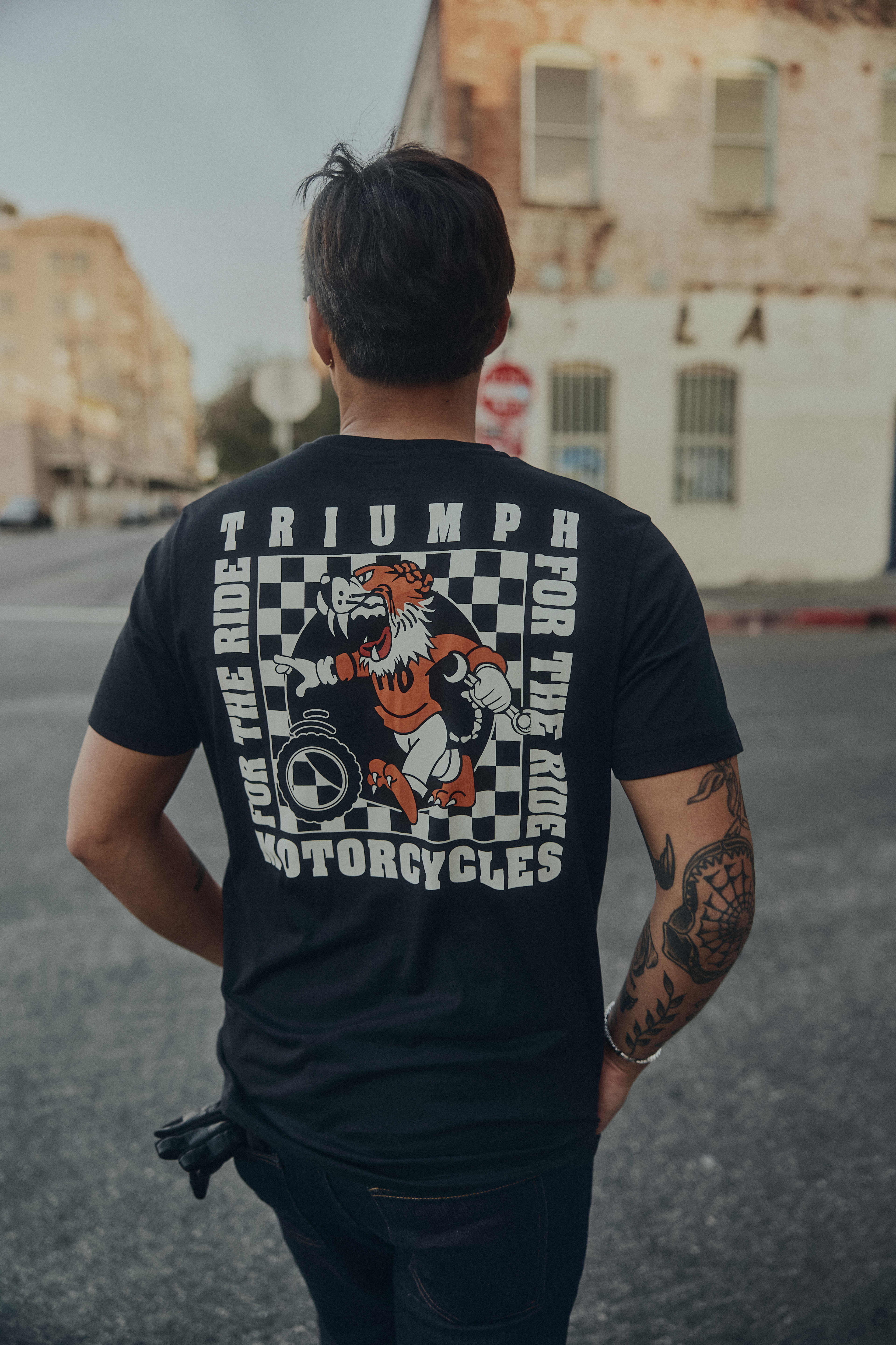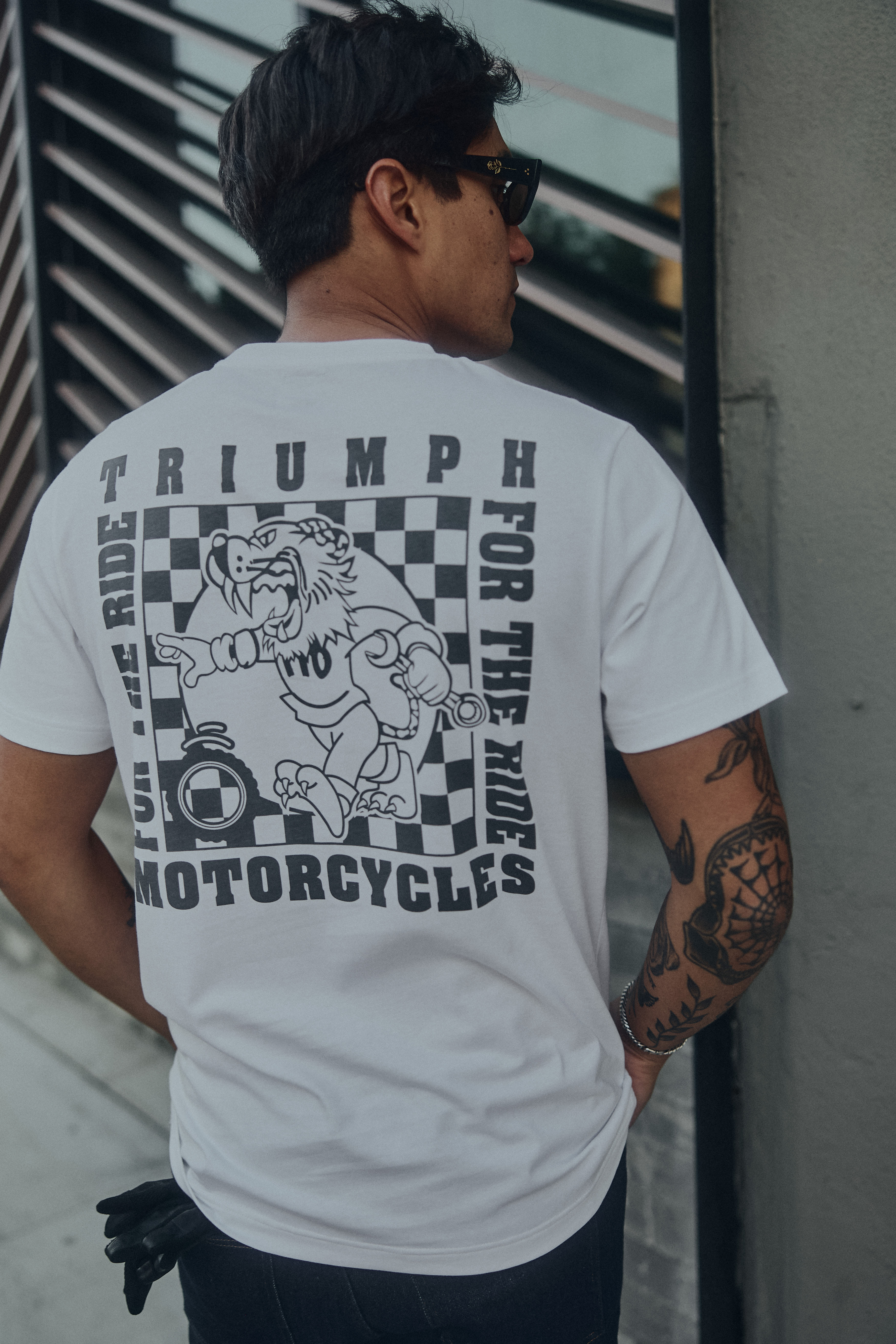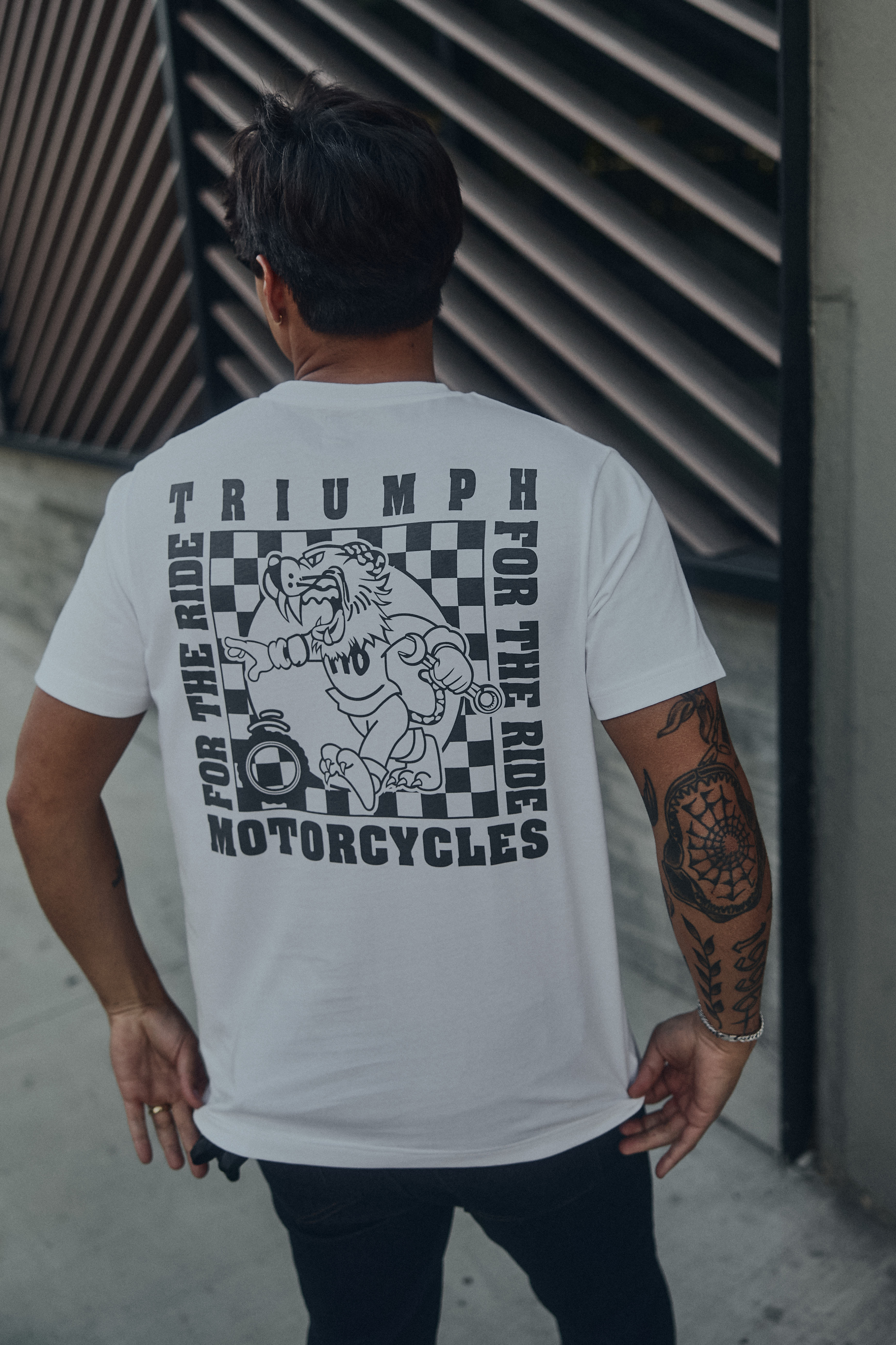 Un t-shirt classique avec un logo Triumph discret sur la poche poitrine et un grand motif dans le dos. 100 % coton doux de 160 g/m2 pour un confort durable.